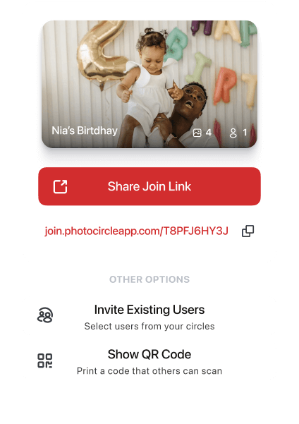 Easily invite family and friends using a shareable link, a scannable QR code, or via a direct invitation within the app.